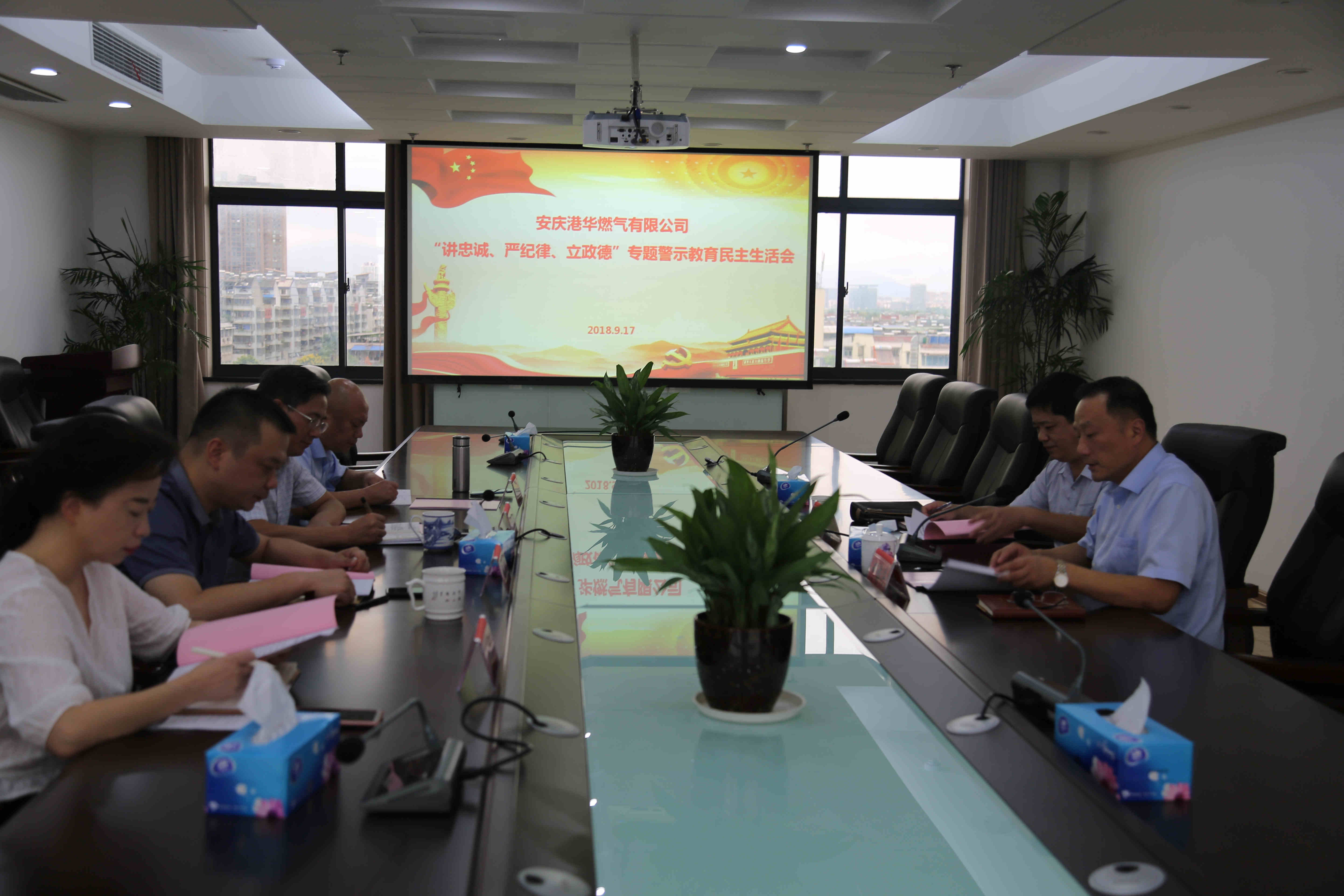9月17日,安慶港華燃氣有限公司黨委召開“講忠誠、嚴紀律、立政德”專題警示教育民主生活會。市城管局黨委委員、副局長姚志蒞會指導(dǎo),公司黨委書記、董事長何族興主持會議。