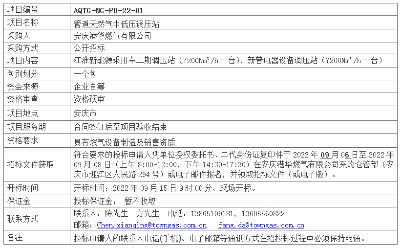 安慶江淮新能源乘用車二期、安慶新普電器設備燃氣工程設備采購招標公告