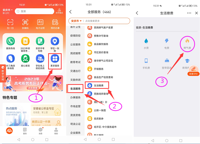 皖事通:安裝并打開皖事通APP,進(jìn)入“更多服務(wù)”-選擇“生活服務(wù)”-“生活繳費(fèi)”,點擊“燃?xì)赓M(fèi)繳納”即可繳納燃?xì)赓M(fèi)或者預(yù)存氣費(fèi)。