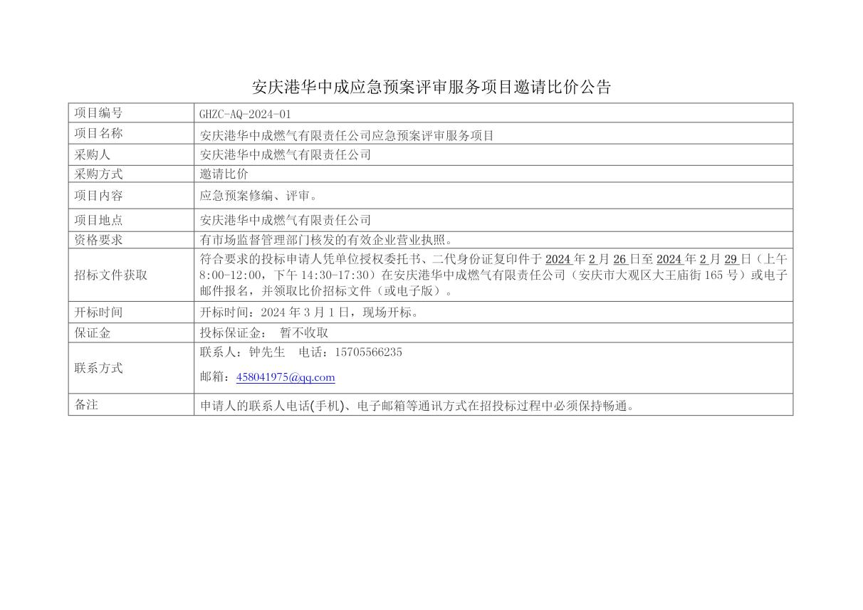 安慶港華安全現(xiàn)狀評(píng)價(jià)報(bào)告編制項(xiàng)目邀請(qǐng)招標(biāo)...