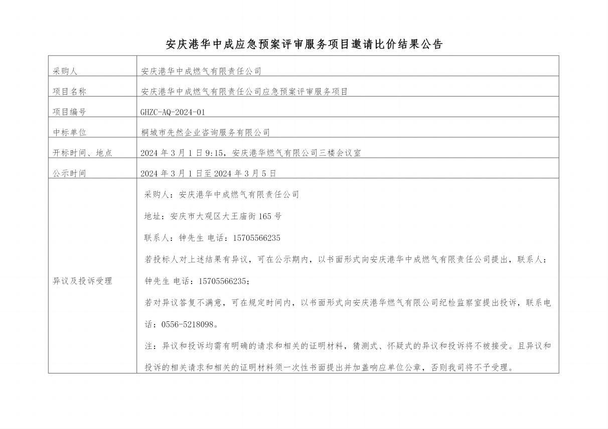 安慶港華中成應(yīng)急預(yù)案評審服務(wù)項(xiàng)目邀請比價(jià)結(jié)果公告