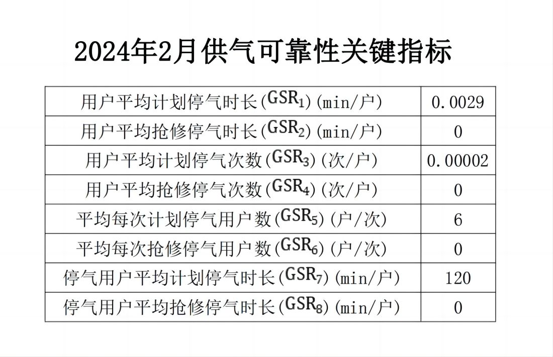 2024年2月供氣可靠性關(guān)鍵指標(biāo)