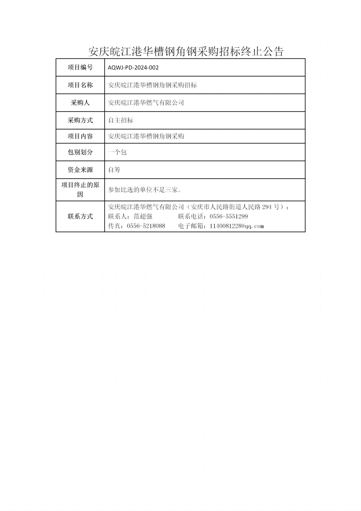 安慶皖江港華槽鋼角鋼采購招標終止公告