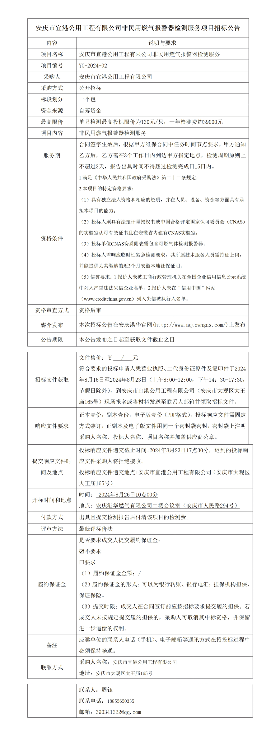 安慶市宜港公用工程有限公司非民用燃?xì)鈭缶鳈z測服務(wù)項目招標(biāo)公告