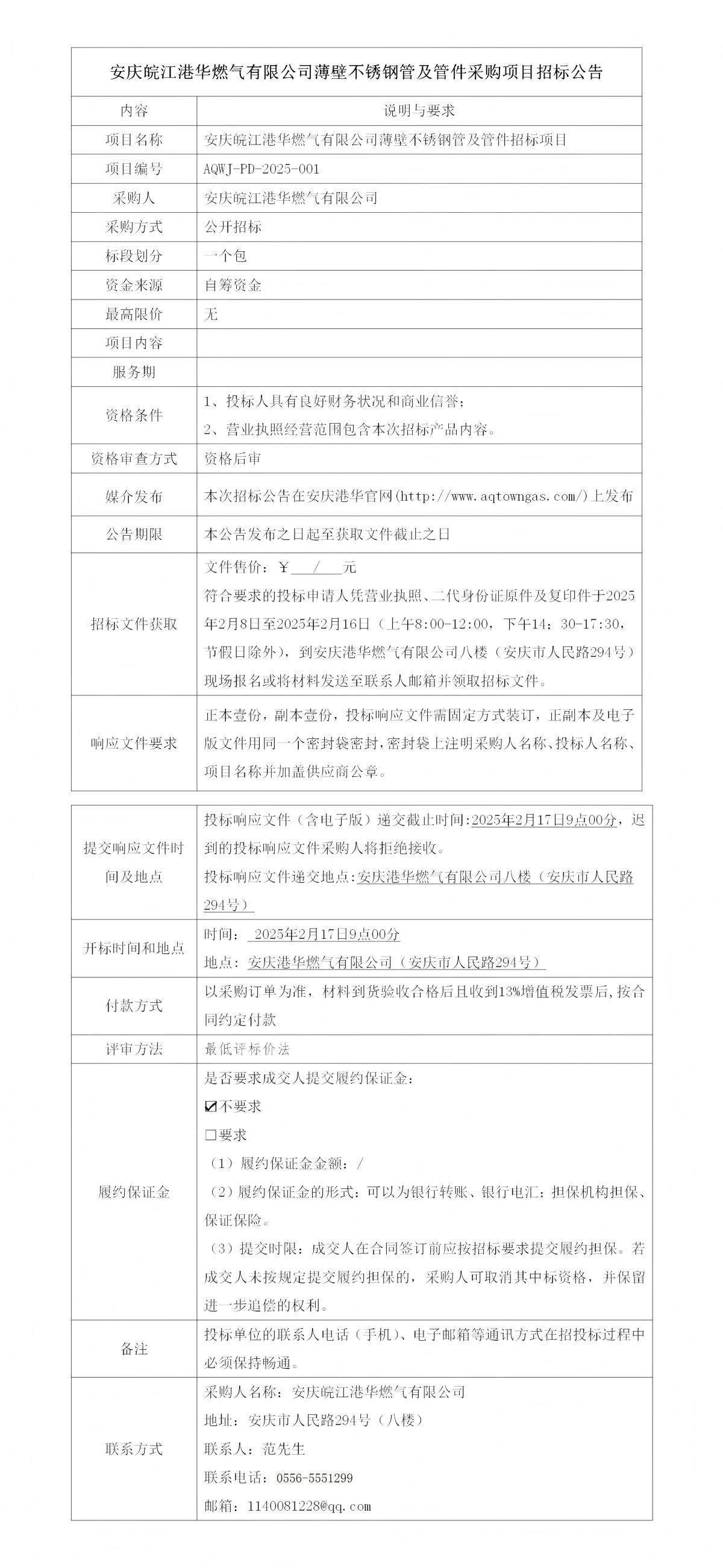 安慶皖江港華燃?xì)庥邢薰颈”诓讳P鋼管及管件采購(gòu)項(xiàng)目招標(biāo)公告