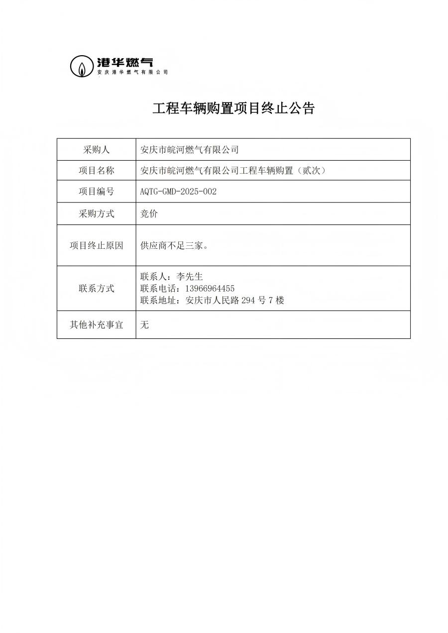 工程車輛購置項(xiàng)目終止公告