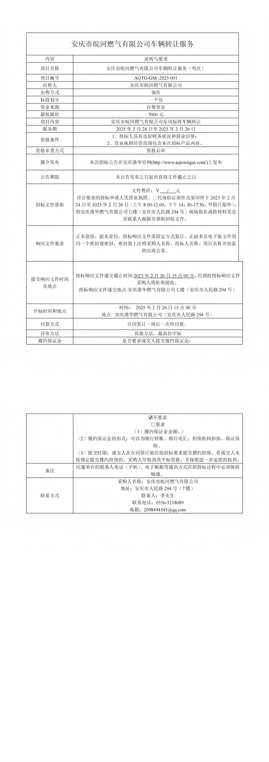 安慶市皖河燃氣有限公司車輛轉(zhuǎn)讓服務(wù) 發(fā)布時間:2025-02-24    閱讀次數(shù):2145次
