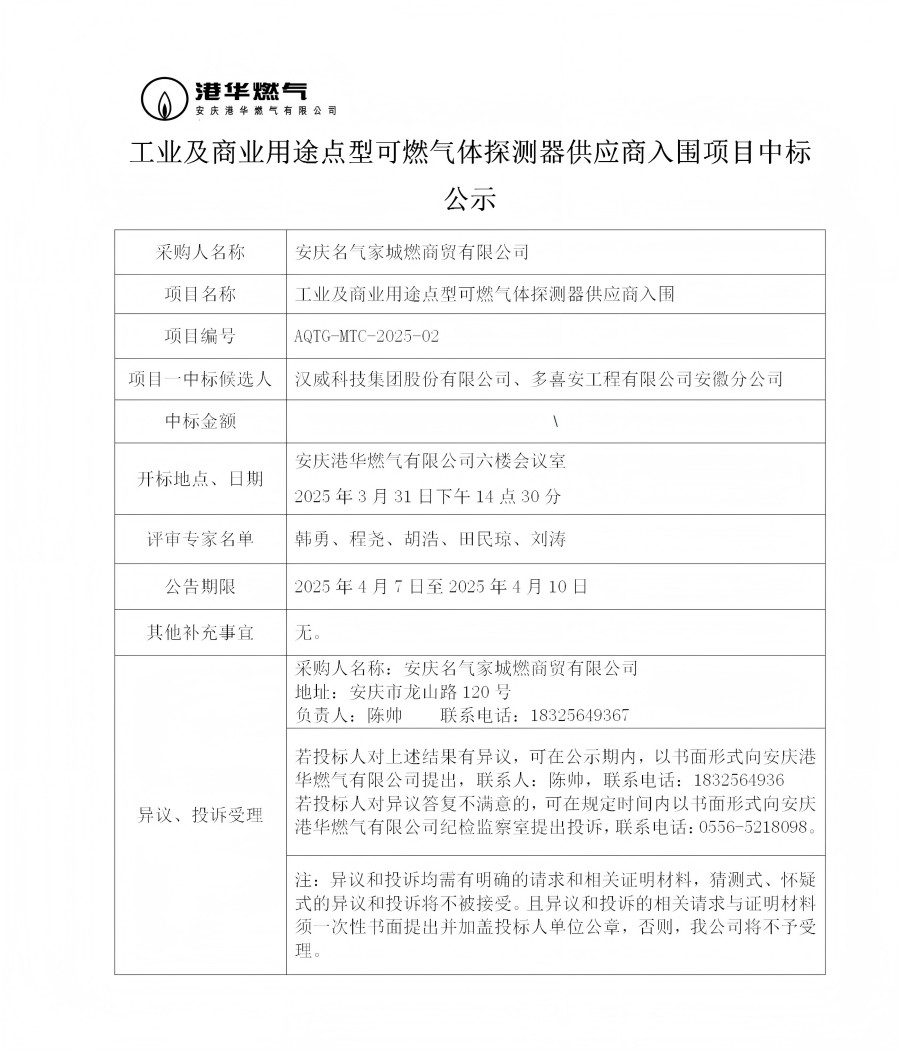 工業(yè)及商業(yè)用途點(diǎn)型可燃?xì)怏w探測(cè)器供應(yīng)商入圍項(xiàng)目中標(biāo)公示 發(fā)布時(shí)間:2025-04-07    閱讀次數(shù):1856次