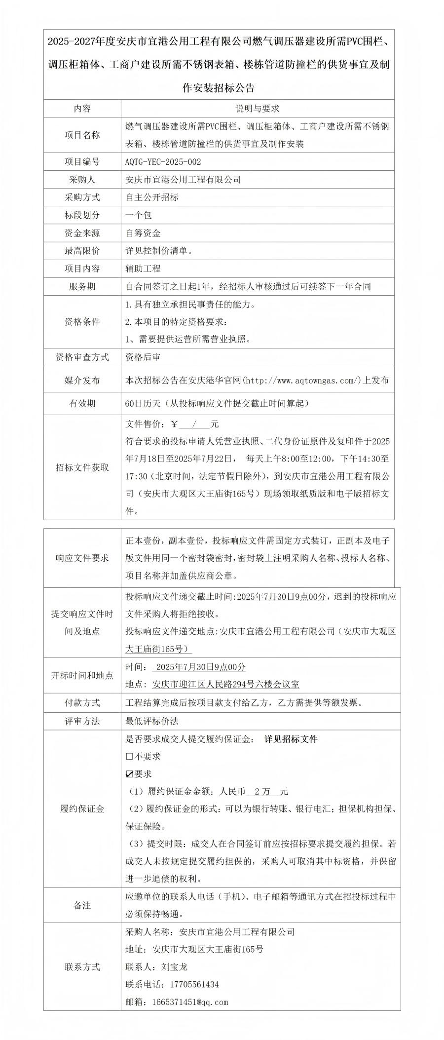 2025-2027年度安慶市宜港公用工程有限公司燃氣調(diào)壓器建設(shè)招標(biāo)公告 發(fā)布時間:2025-07-18    閱讀次數(shù):1494次
