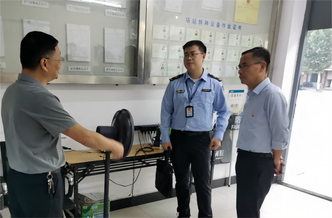 王海平一行聚焦“雙節(jié)”前后站內(nèi)安全生產(chǎn)工作,詳細了解了節(jié)日期間安全防范措施落實、值班值守安排及特種設(shè)備安全管理情況,重點檢查了氣瓶充裝操作規(guī)程、經(jīng)營場所證照、設(shè)備設(shè)施日常運行管理、從業(yè)人員持證以及安全管理制度建立完善等工作。