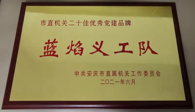 安慶港華“藍焰義工隊”榮獲“安慶市直機關二十佳優(yōu)秀黨建品牌”稱號 發(fā)表時間 : 2021-06-23 閱讀次數(shù) : 12130